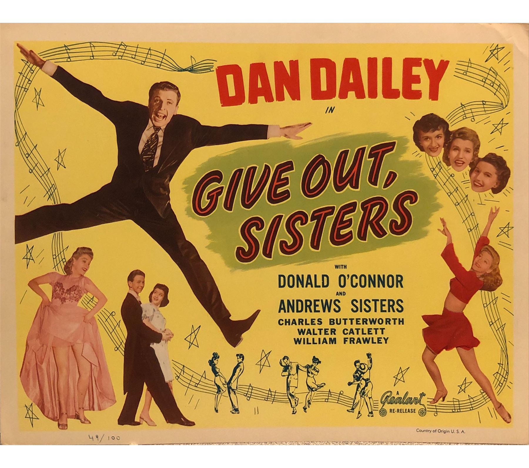 Give Out, Sisters original 1949R vintage lobby card on heavy card stock. 11x14 inches