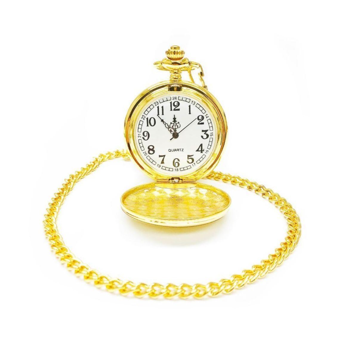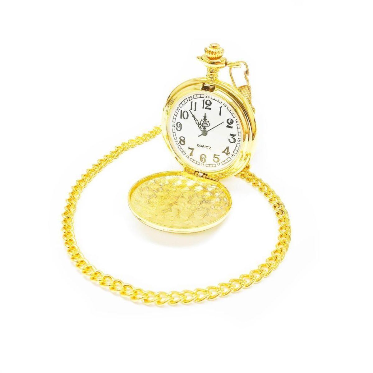 Gold Tone Quartz Old School Pocket Watch. View Photos For Further Details.
