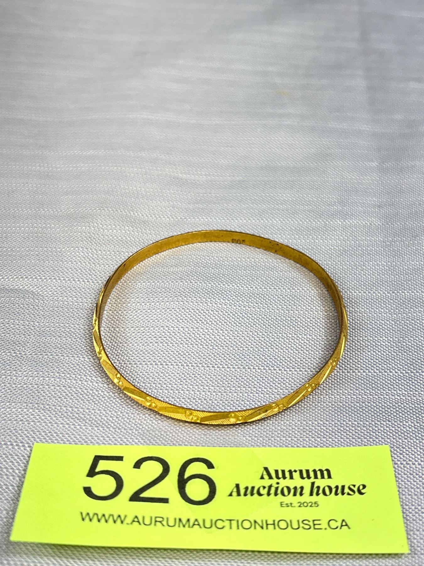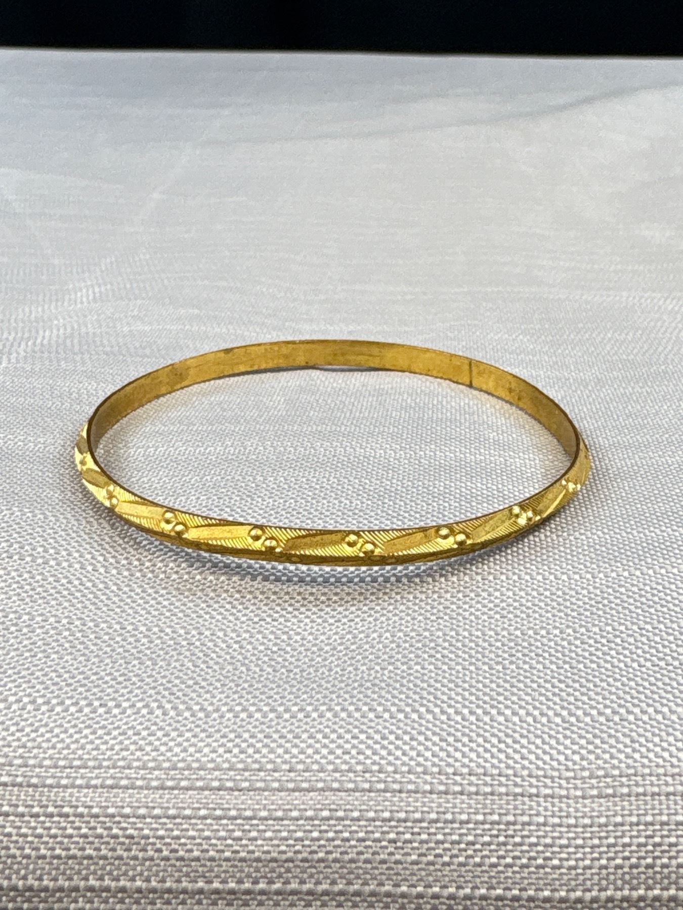 Gold Tone Raised Engraved Bangle, Marked PAK