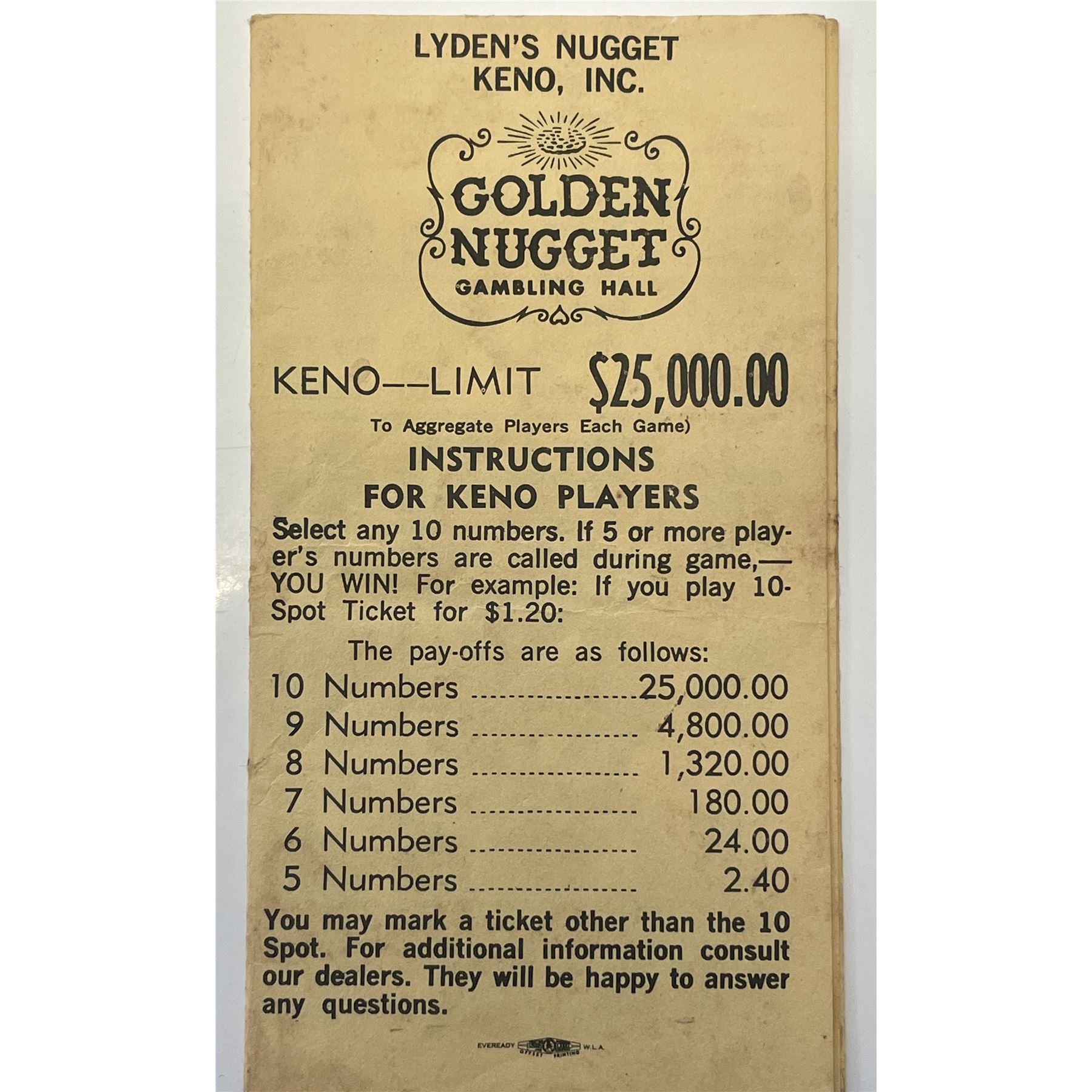 Golden Nugget pamphlet
