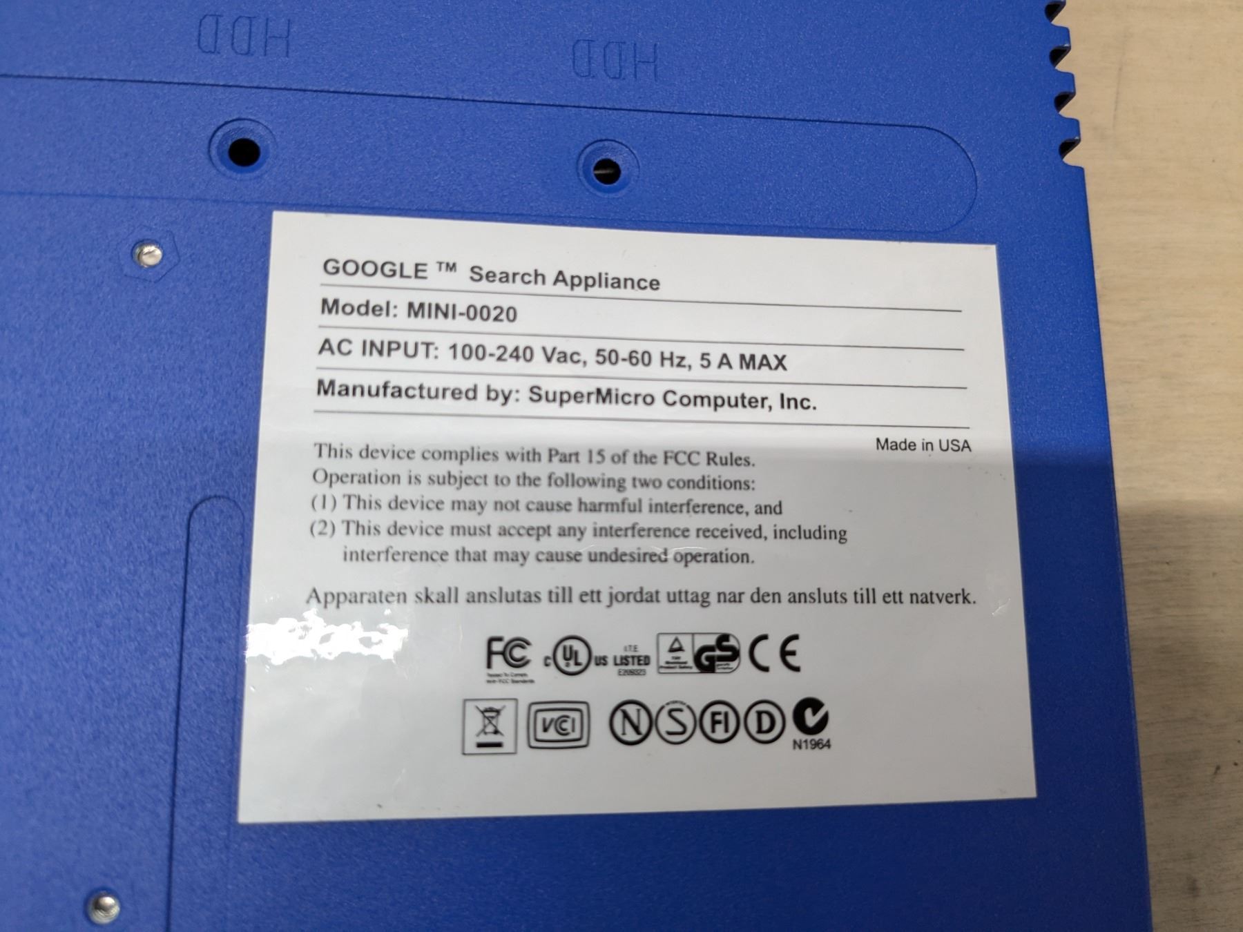 Google Search Appliance MINI-0020 Supermicro
