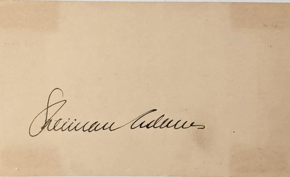 Gov. Sherman Adams signed postal card. 3 x 5 inches.
