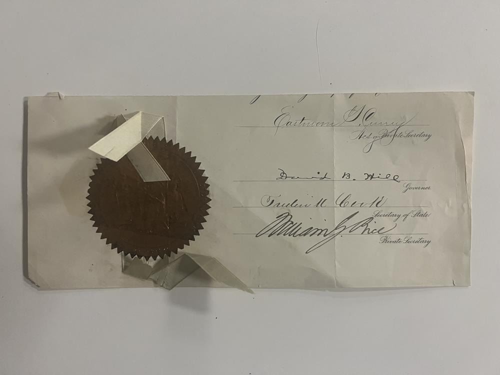 Governor of New York David B. Hill and Private Secretary William Gorham Rice original signatures.9x4 inches