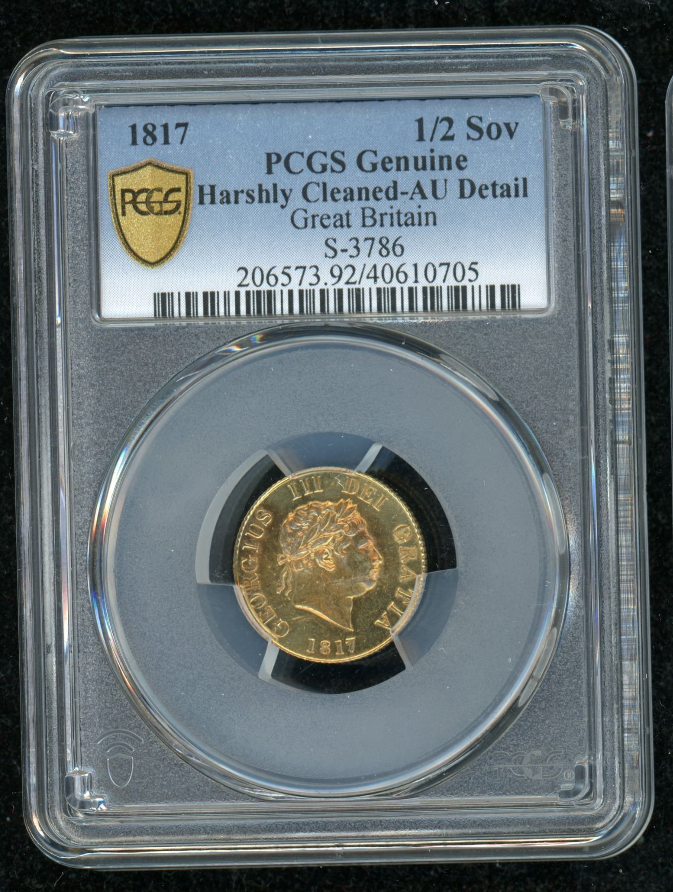 KM.673 George III, PCGS AU Detail, Harshly Cleaned. Remains a very sharp example of the first Half Sovereign issue
