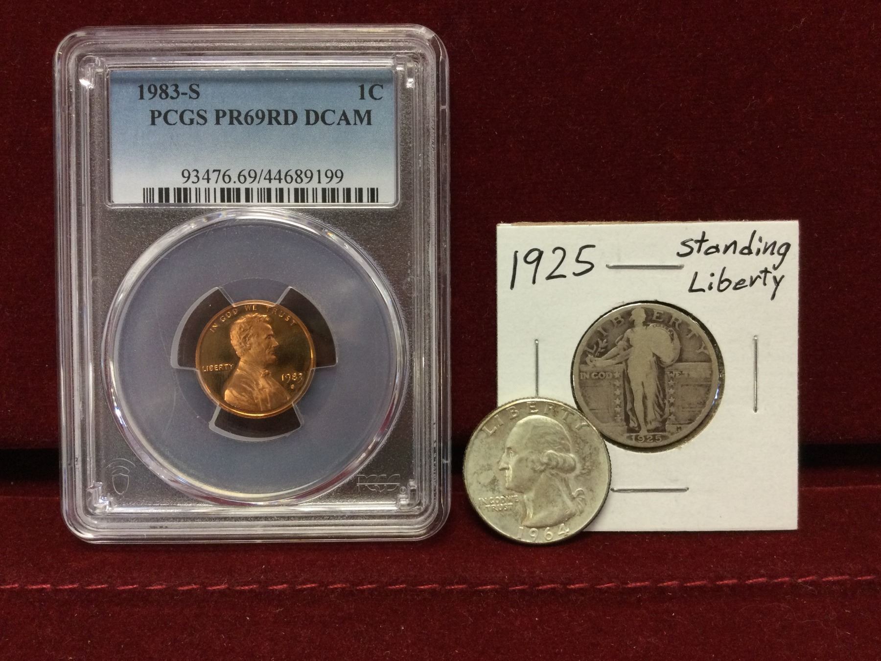 You are bidding on a great coin dealer's lot, including 1925 US Quarter, 1964 Silver Quarter and a Proof 1985 S US Certified Penny, a great addition to your collection