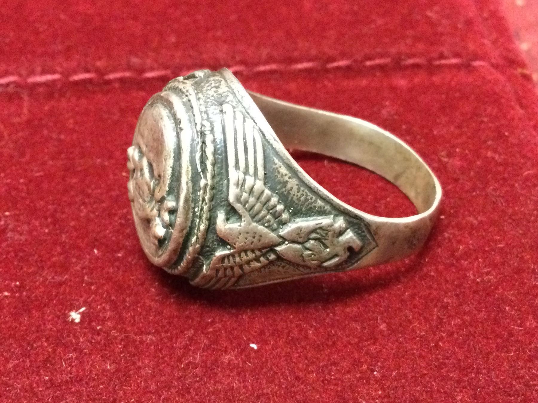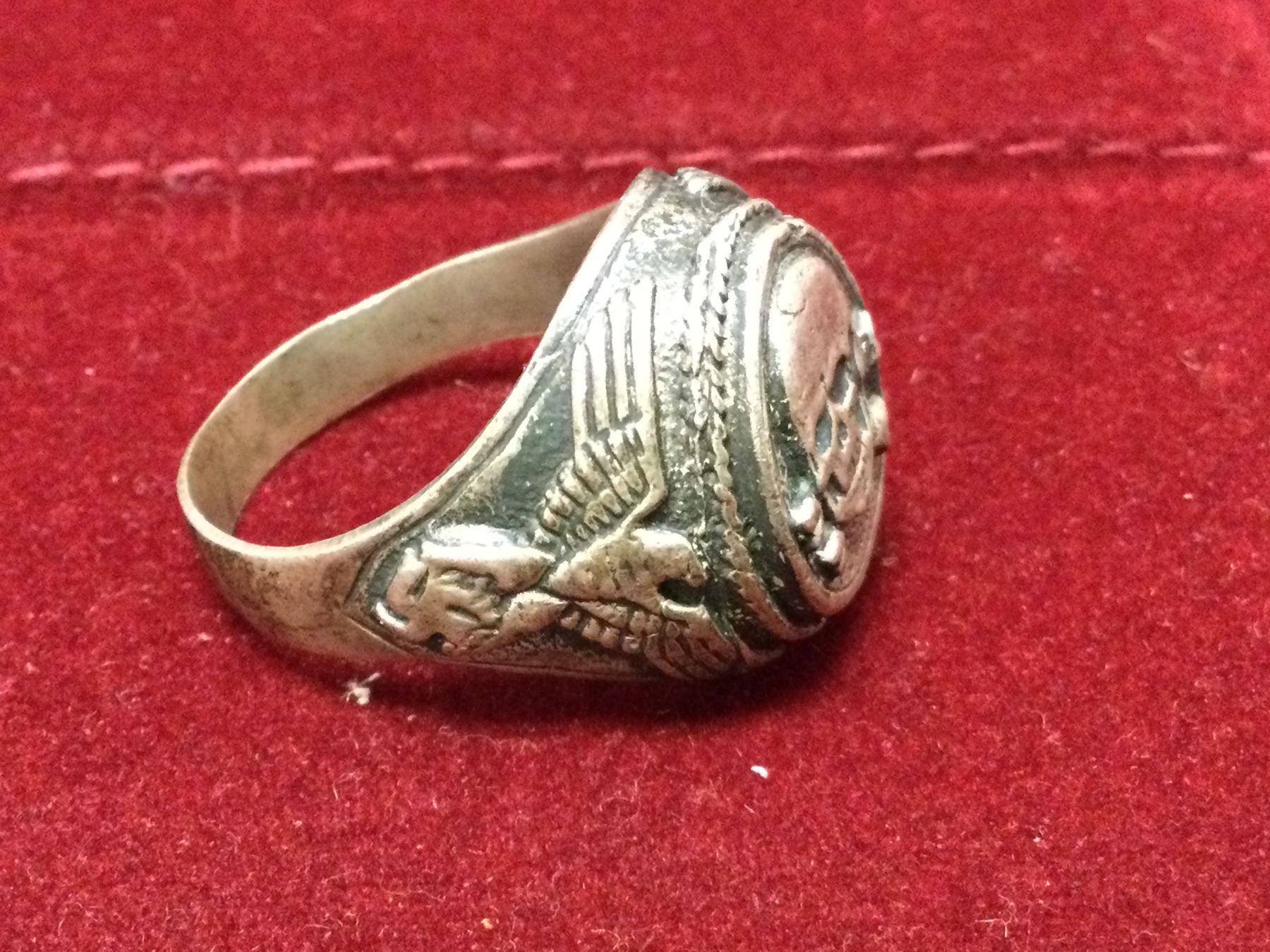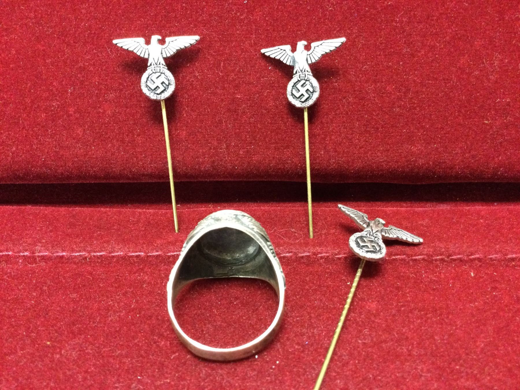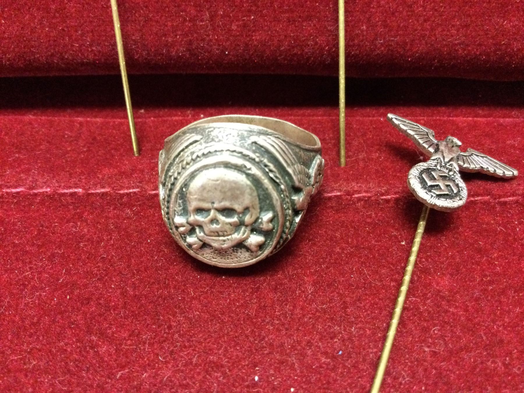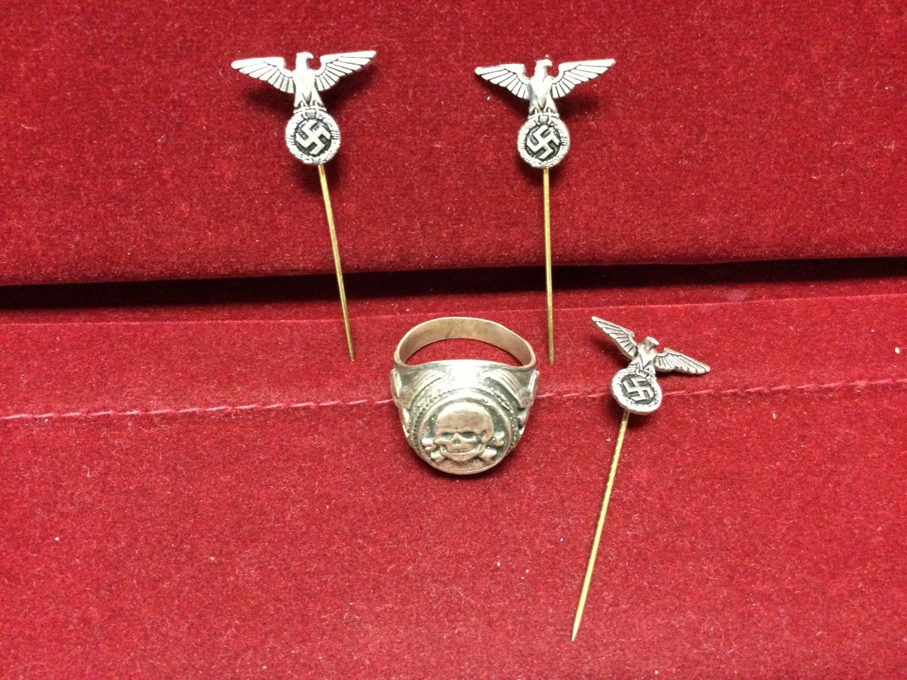You are bidding on the entire collection of attic found German Artifacts, including a Death Skull Ring and Party Pins