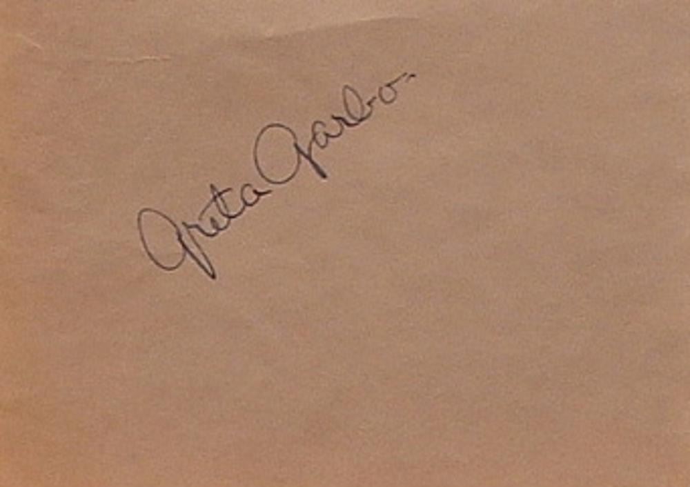 Greta Garbo 5 1/2 in. by 4 in. signature slip signed Larry (Stooge) Fine