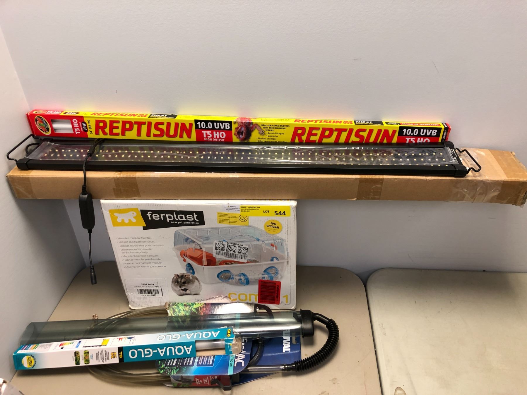 Group Lot of Misc. Pet Supplies - Hamster Habitat, Reptile and Aquarium Lights, Aquarium Easy Vac