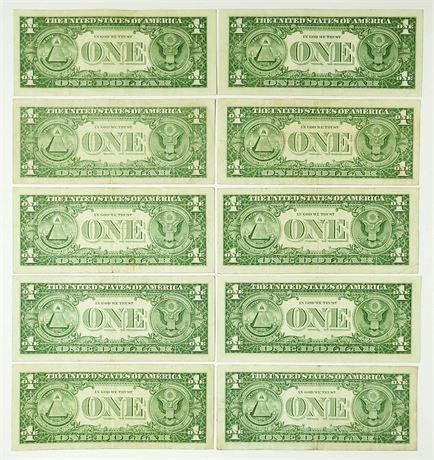 Group of 10 1957* $1 Silver Certificate Star Notes