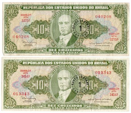 Group of 2 BRAZIL. P#183 ND (1966-67) 10 Cruzeiros