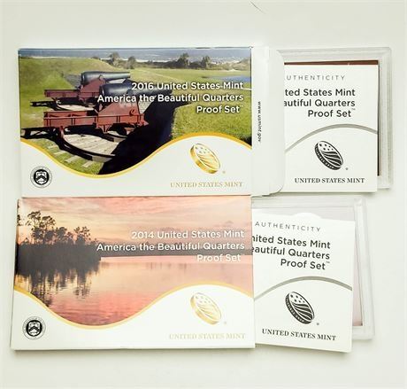 Group of 2 Proof Sets 2014 and 2016 United States America the Beautiful Quarters