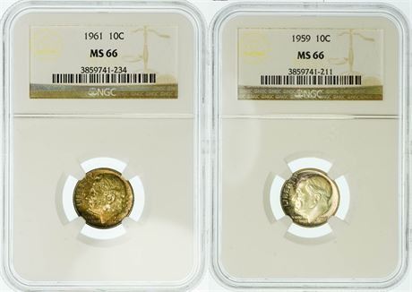 Group of 2 Roosevelt Dimes 1959 and 1961 NGC MS-66