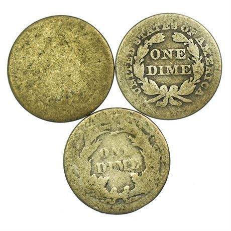 Group of 3 Seated Liberty Dimes 1856, 1877, 1887