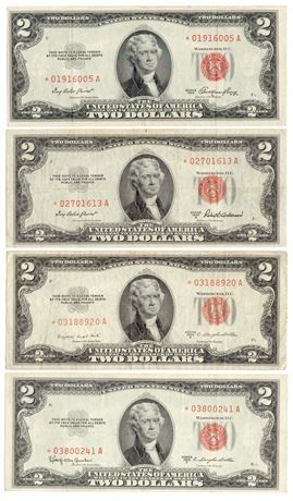 Group of 4 1953*, A*, B*, C* $2 Legal Tender Star Notes