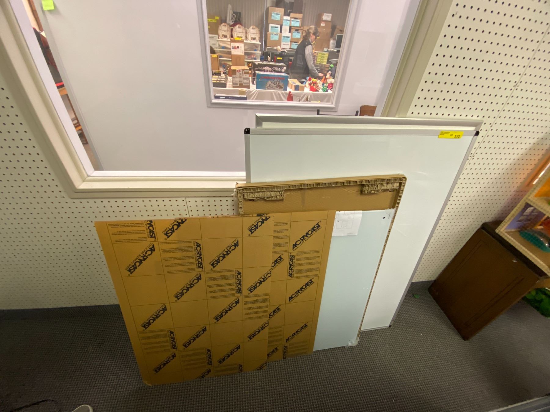 Group of 4 White Boards, and Acrylic Sheets plus Glass board