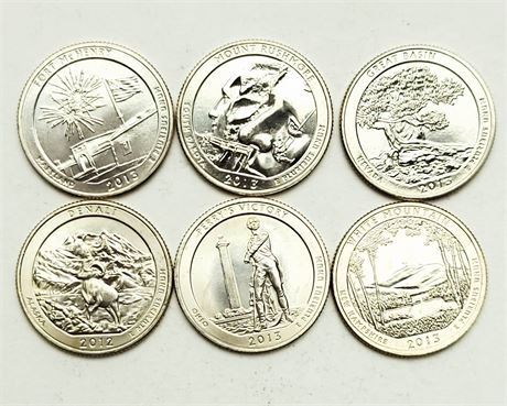 Group of 6 National Park Washington Quarters 2012-S - 2013-S