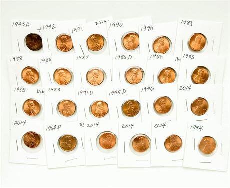 Group of 72 Memorial and Shield Lincoln Cents 1968-D - 2018-DEstimate: $20