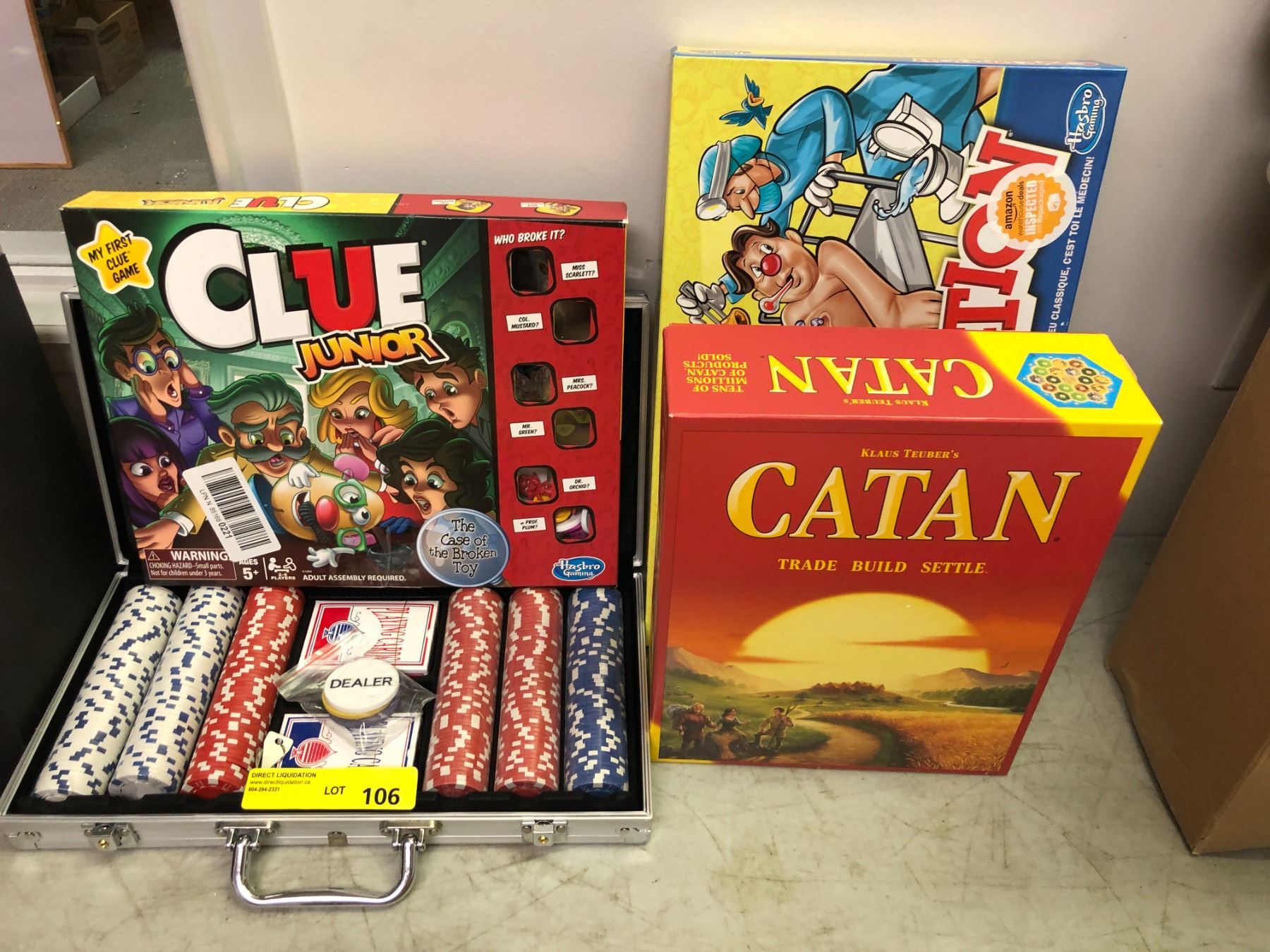 Group of Games - Catan, Operation, Clue Junior & Cased Poker Set