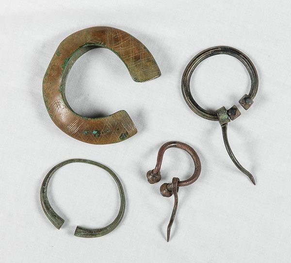 Group of Graeco-Roman Bronzes. Consists of 2 bracelets and 2 rings with attachments. The large bracelet is nicely incised. All are well patinated. Total of 4 pieces.