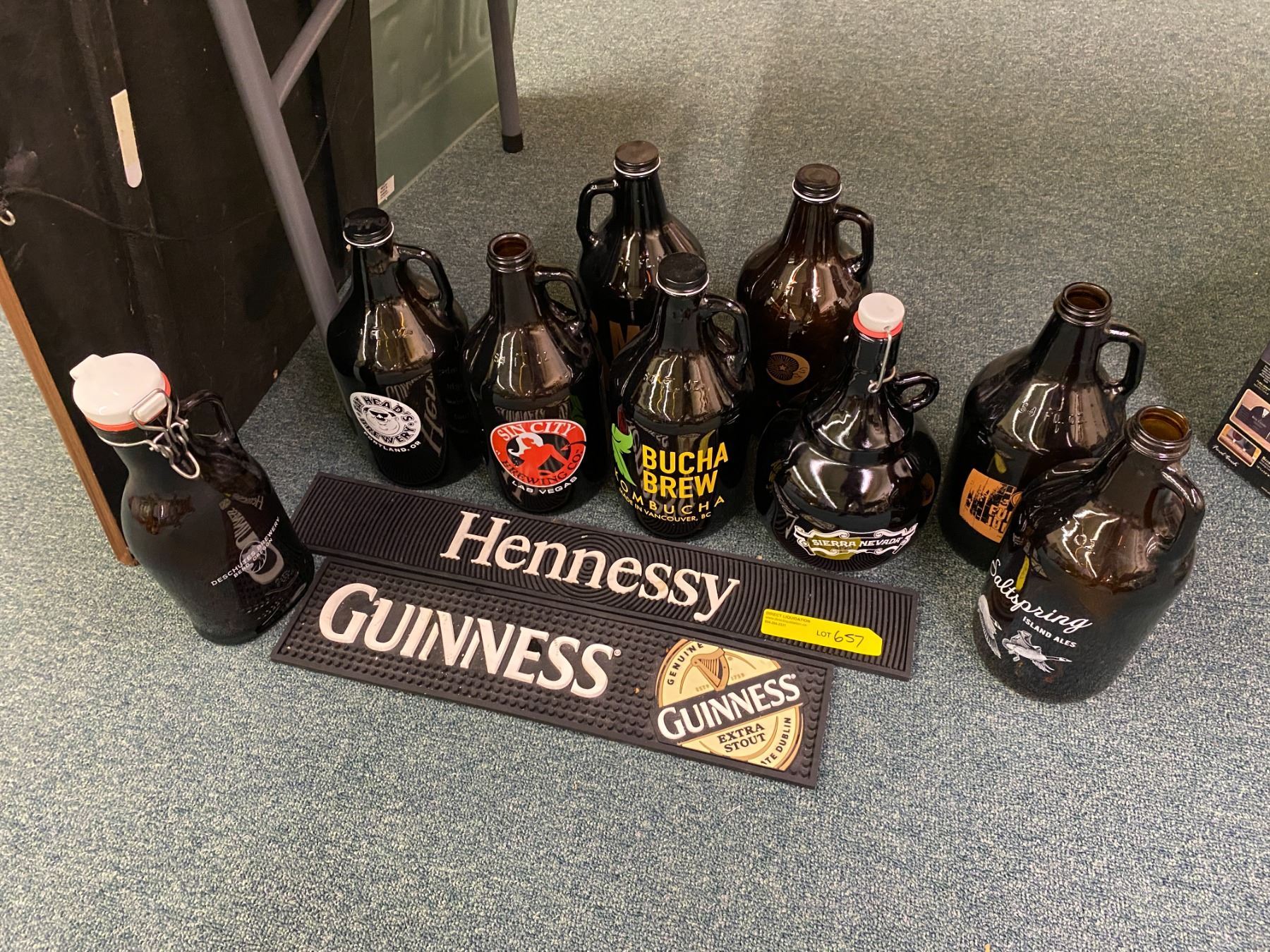 Group of Growlers from Various Brewery's plus two bar drip trays - approx. 9 growlers - 2 flip tops
