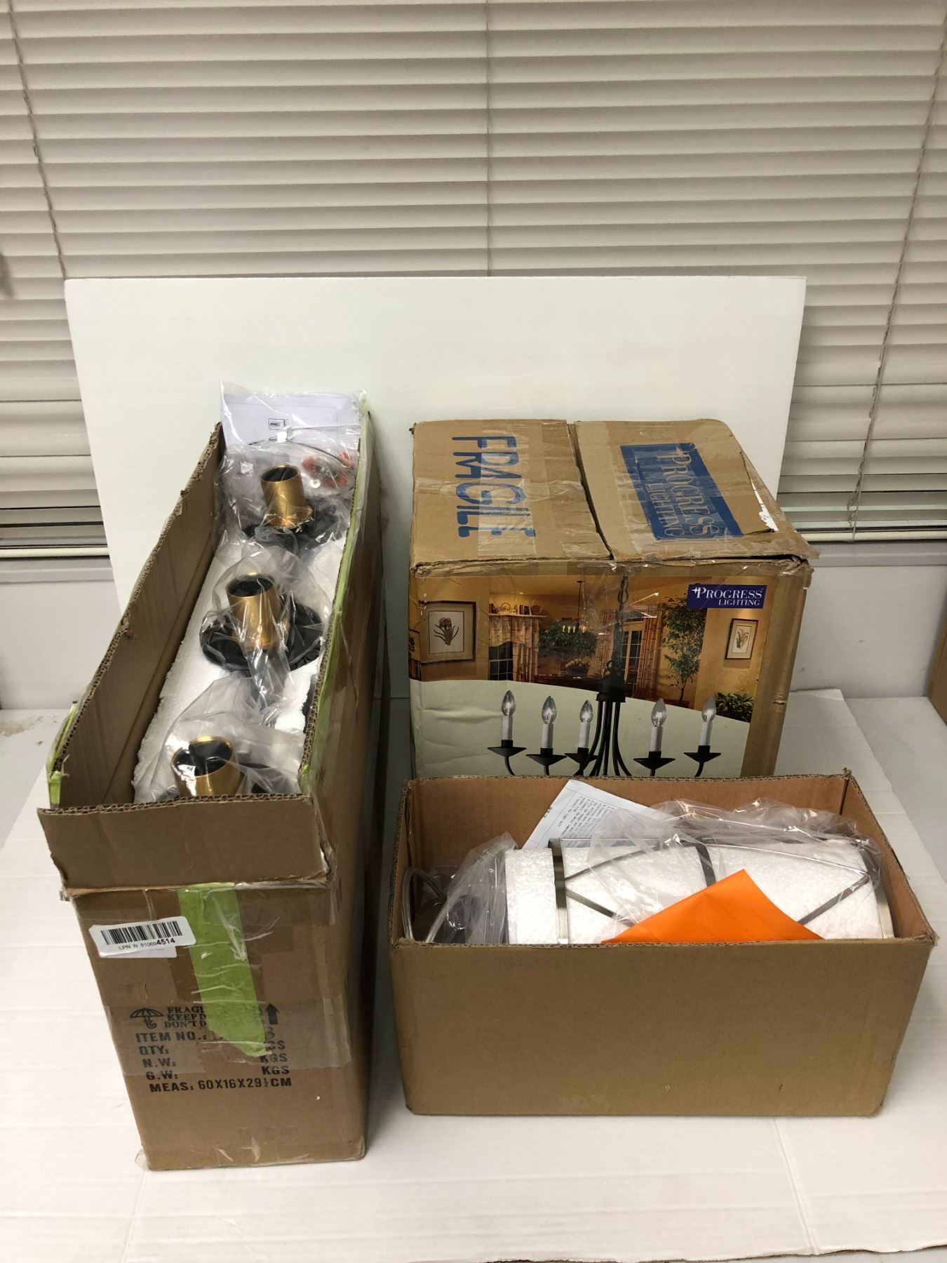 Group of Misc. Lights - Aria Collection Chandelier, Hanging Pendant Light Fixture and Stainless Cage Light