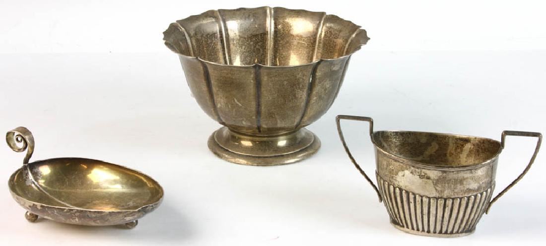 Sterling items to include bowl, leaf-form dish, sugar bowl, approximately 15.2 troy oz TW. Provenance: Boxford, Massachusetts estate.