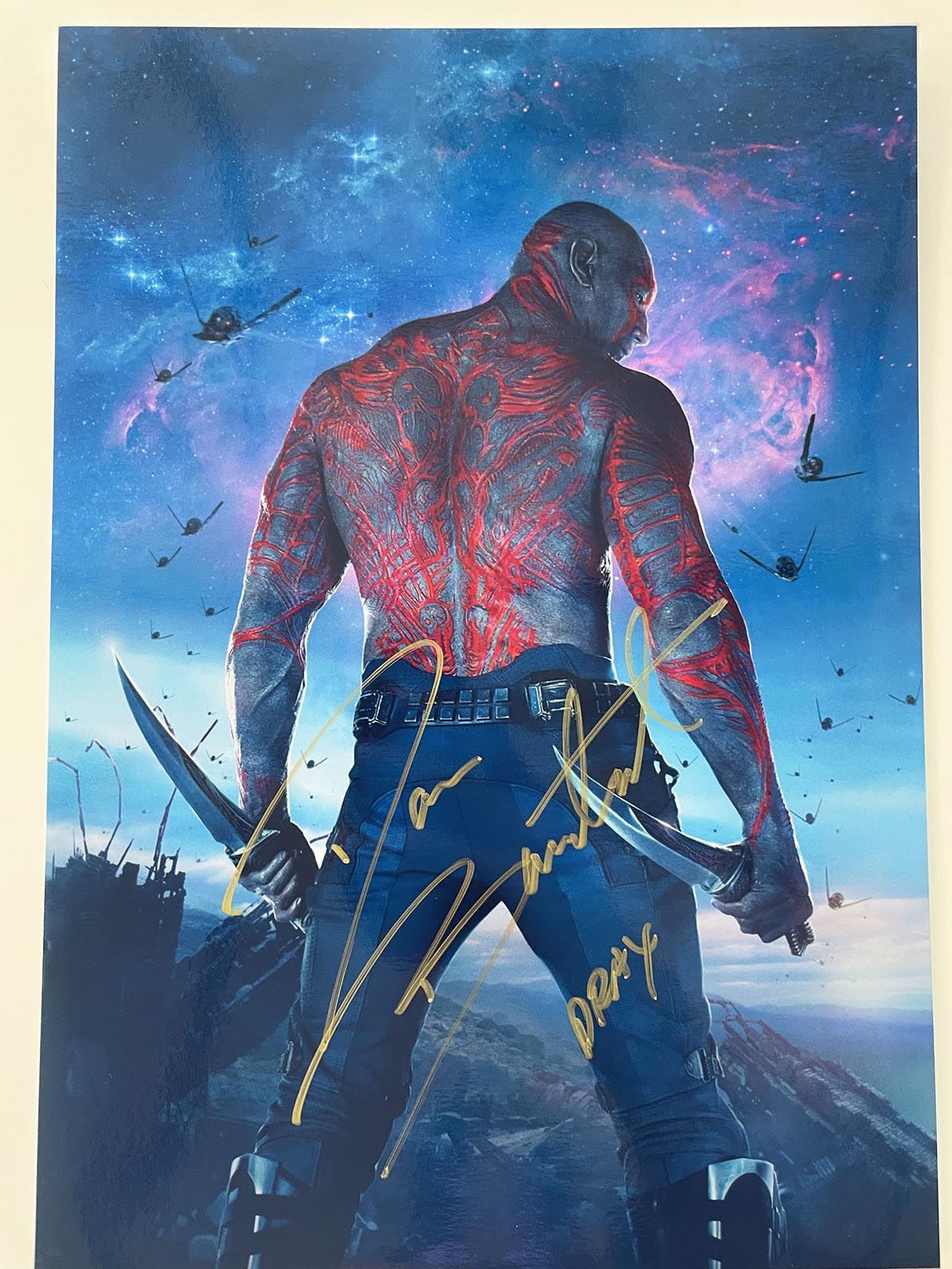 Guardians of the Galaxy signed movie photo autographed by Dave Bautista. 8x10 inches