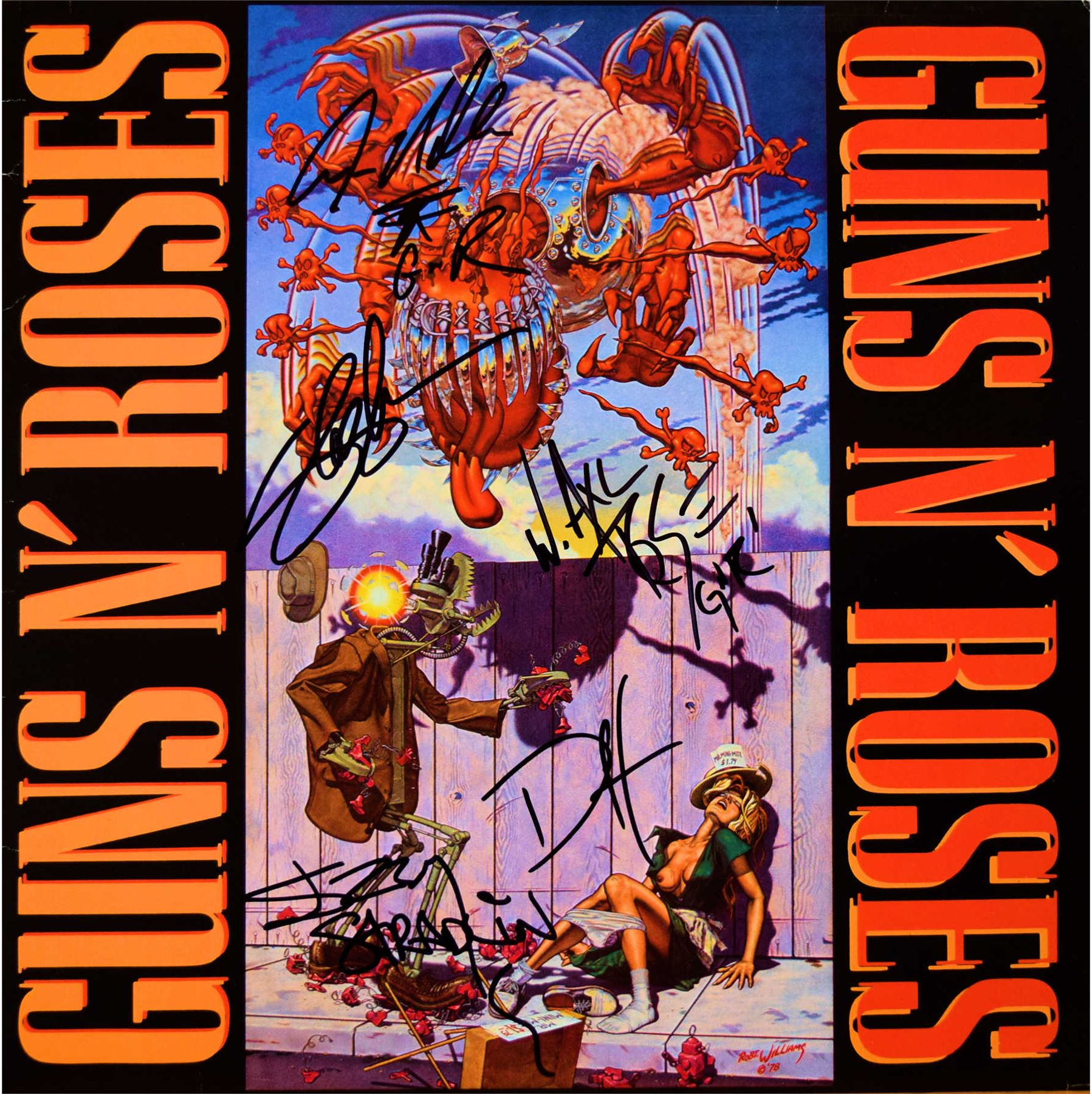 Guns N' Roses 1987 Appetite For Destruction (Rape Cover) album. Signed: Izzy Stradlin, W. Axl Rose GNR’, Duff, Slash, Steven Adler GNR.