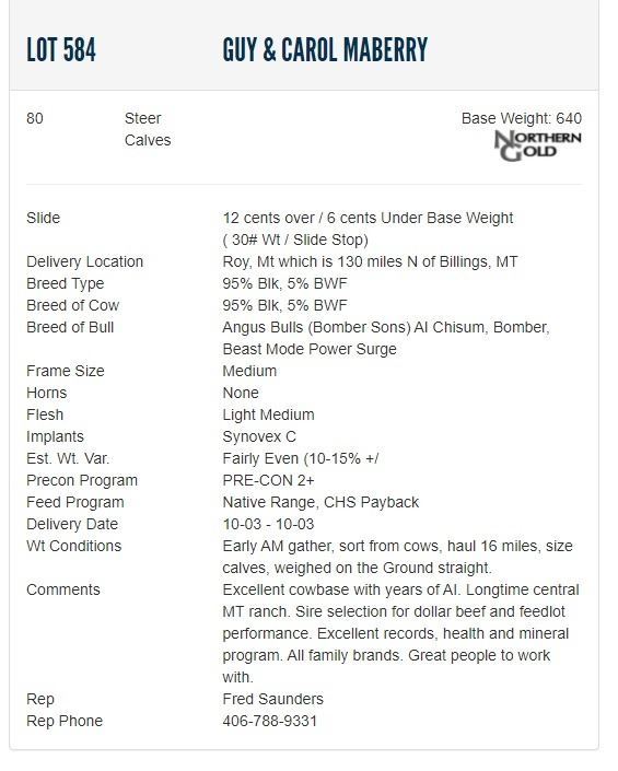Guy & Carol Maberry - 80 Steers; Base Weight: 640