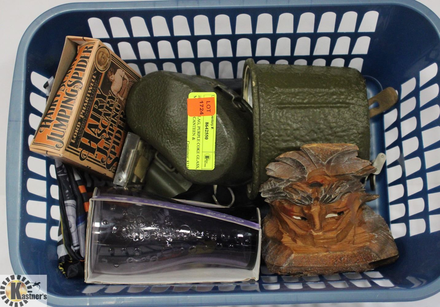 HARLEY FLAG, PURPLE COKE GLASS, MILITARY CANTEEN