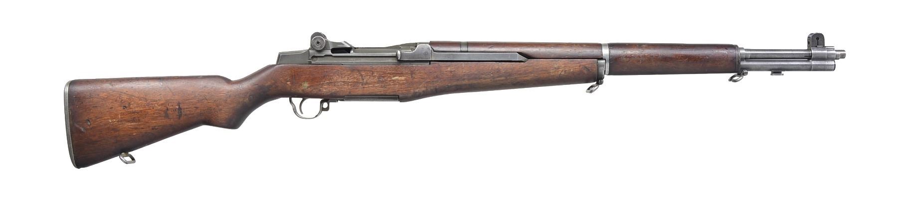 Cal. 30-06. S# 4667147. Bbl. 24" marked on right side "HRA 4-53". Throat gauges 3.5 & muzzle gauges 1.5. Bolt operating rod, trigger housing & hammer are all marked "SA". Safety is marked "IHC". Stamped trigger guard. Flush nut aperture rear sight. Blade front sight. High hump gas cyl. lock & cross slot gas cyl. lock screw. Walnut stock set. Buttstock has faint boxed Defense acceptance stamp on left side & encircled "P" under pistol grip. UNATTACHED ACCESSORIES: retains arsenal hang tag. CONDITION: stock set has wear, staining, dents & scratches. Buttstock has been lightly cleaned on left side in cheek area. Front handguard has sm. crack on right rear & left front. Metal has well worn thinning original finish. Good shiny bore w/ light wear to lands. (19-5908/RW). CURIO. $600-1,000.