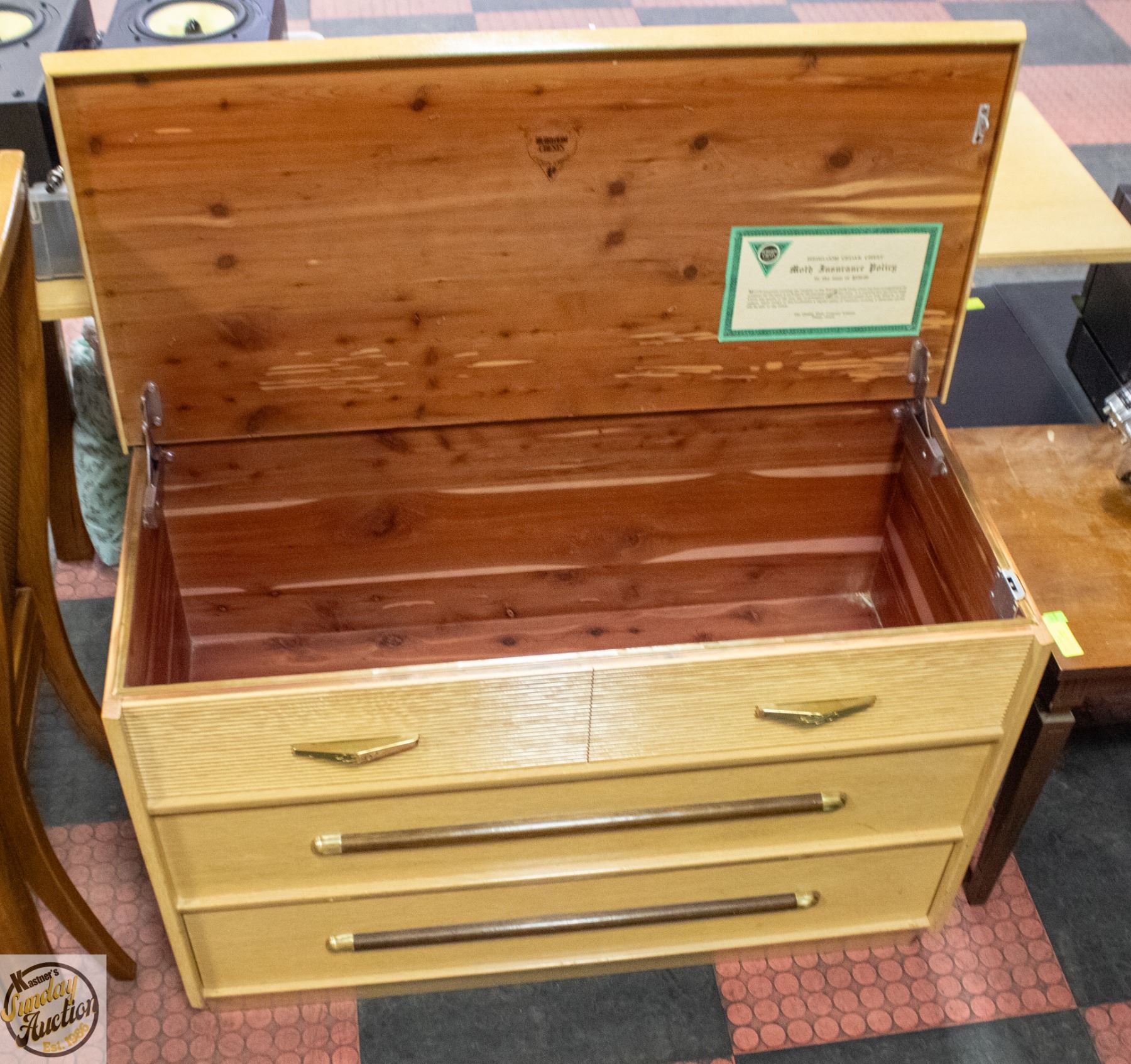 CEDAR LINED WOODEN CHEST (DRAWER STYLE/LOOKING FRONT) H-26.5" W-18.5" L-40.5" **ALL ITEMS MUST BE REMOVED BY 5PM SATURDAY, MARCH 7TH 2026. ALL REMAINING ITEMS WILL BE SUBJECT TO A $6.00 PER DAY STORAGE CHARGE. ANY ITEMS REMAINING AFTER MONDAY, MARCH 30TH 2026 WILL BE CONSIDERED FORFEITED. NO REFUNDS WILL BE ISSUED FOR FORFEITED ITEMS. TO SCHEDULE A PICK UP APPOINTMENT CLICK HERE