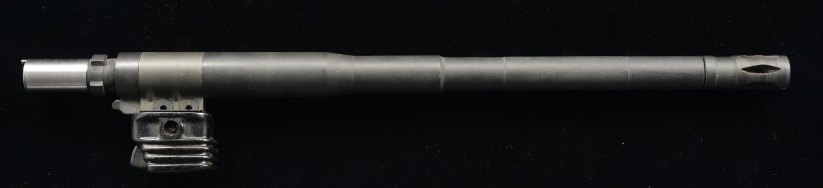 Cal. 7.62 NATO. NSN. Bbl. 17.7”. 1 Spare heavy profile bbl. for the HK 23, complete w/ factory style flash hider & handle. CONDITION: There are no obvious blemishes in bbl. finish & bore is shiny w/ good rifling. It is unclear whether this bbl. was ever utilized or just purchased as a spare that never saw use. (02-13776-2/JZ). NONGUN. $500-900.