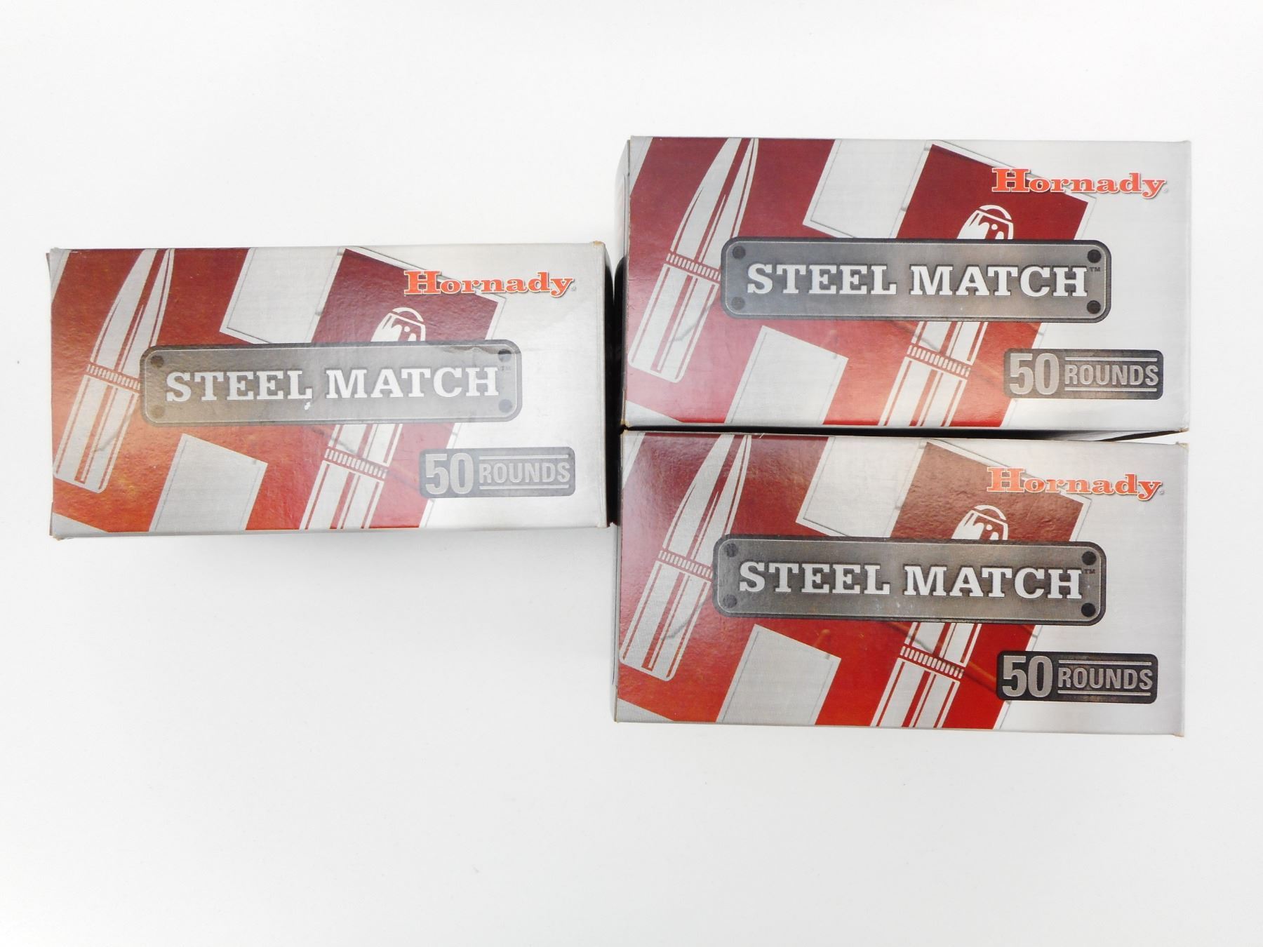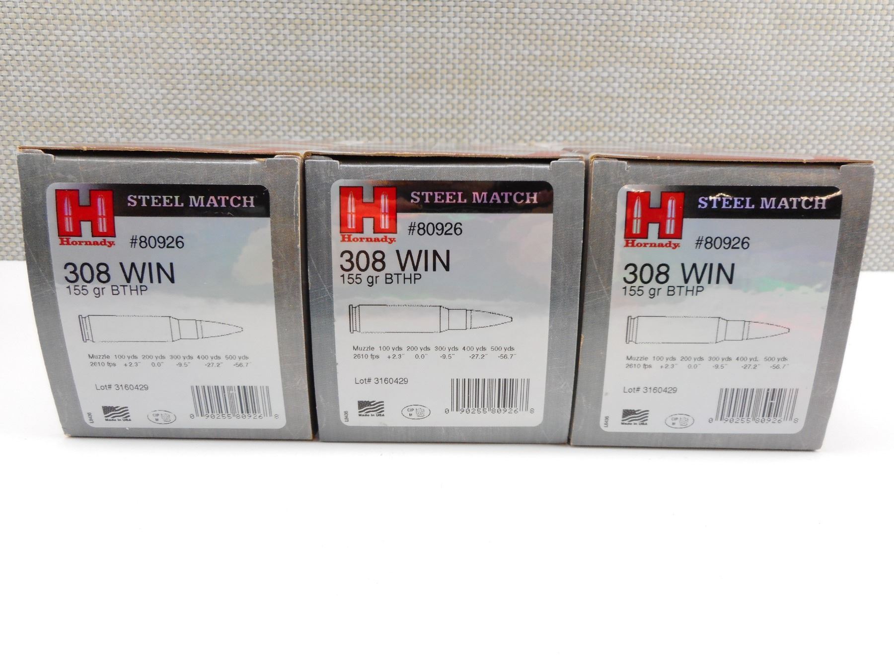 HORNADY 308 WIN AMMO , 150 RNDS HORNADY 308 WIN, 155 GRNS, BTHP STEEL MATCH AMMO