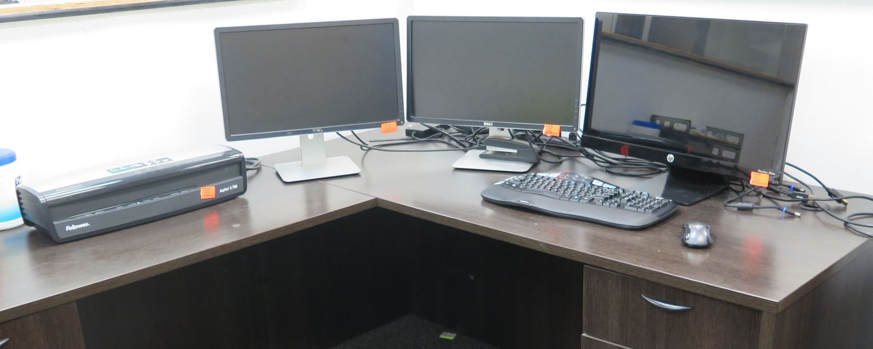 HP & Dell Monitor, Fellowes Jupiter2 Laminator (Desk Not Included)