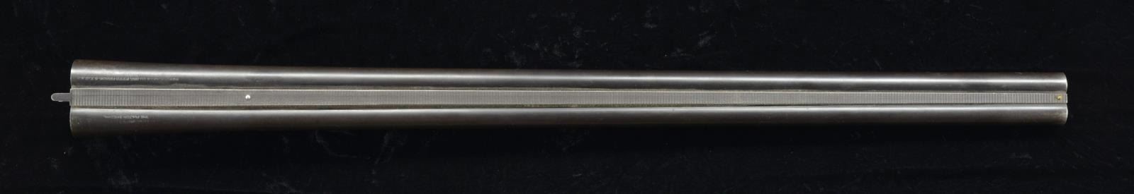 BARRELS. S# F 85179. Bbls. 30" w/ matted rib, brass front bead & bright rear bead. Full & mod chokes. Blue finish. CONDITION: good lightly faded blue w/ wear at muzzle. Shiny bores w/ fouling near muzzle. (02-16743/MD). $30-50.
