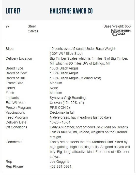 Hailstone Ranch Co - 97 Steers; Base Weight: 650