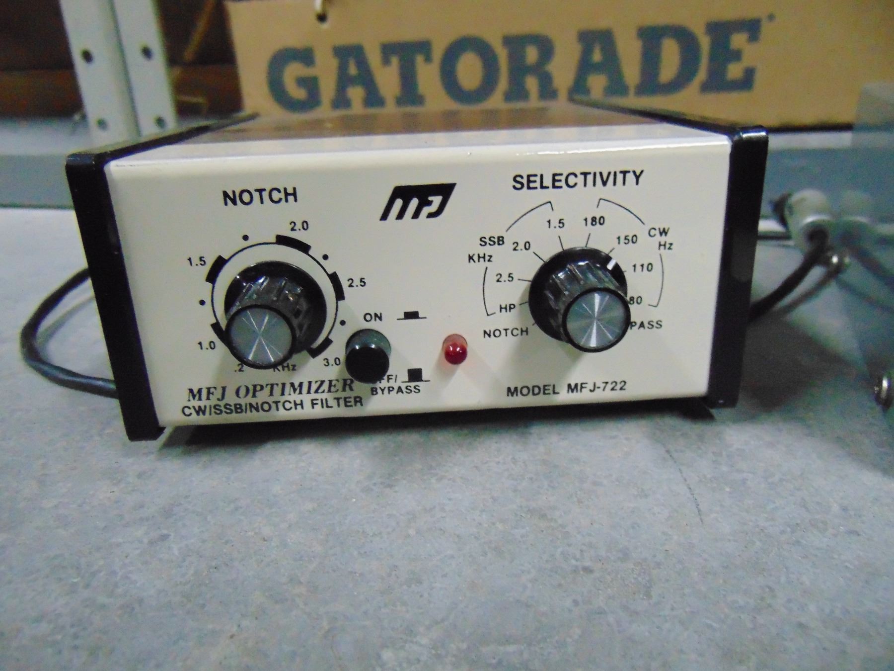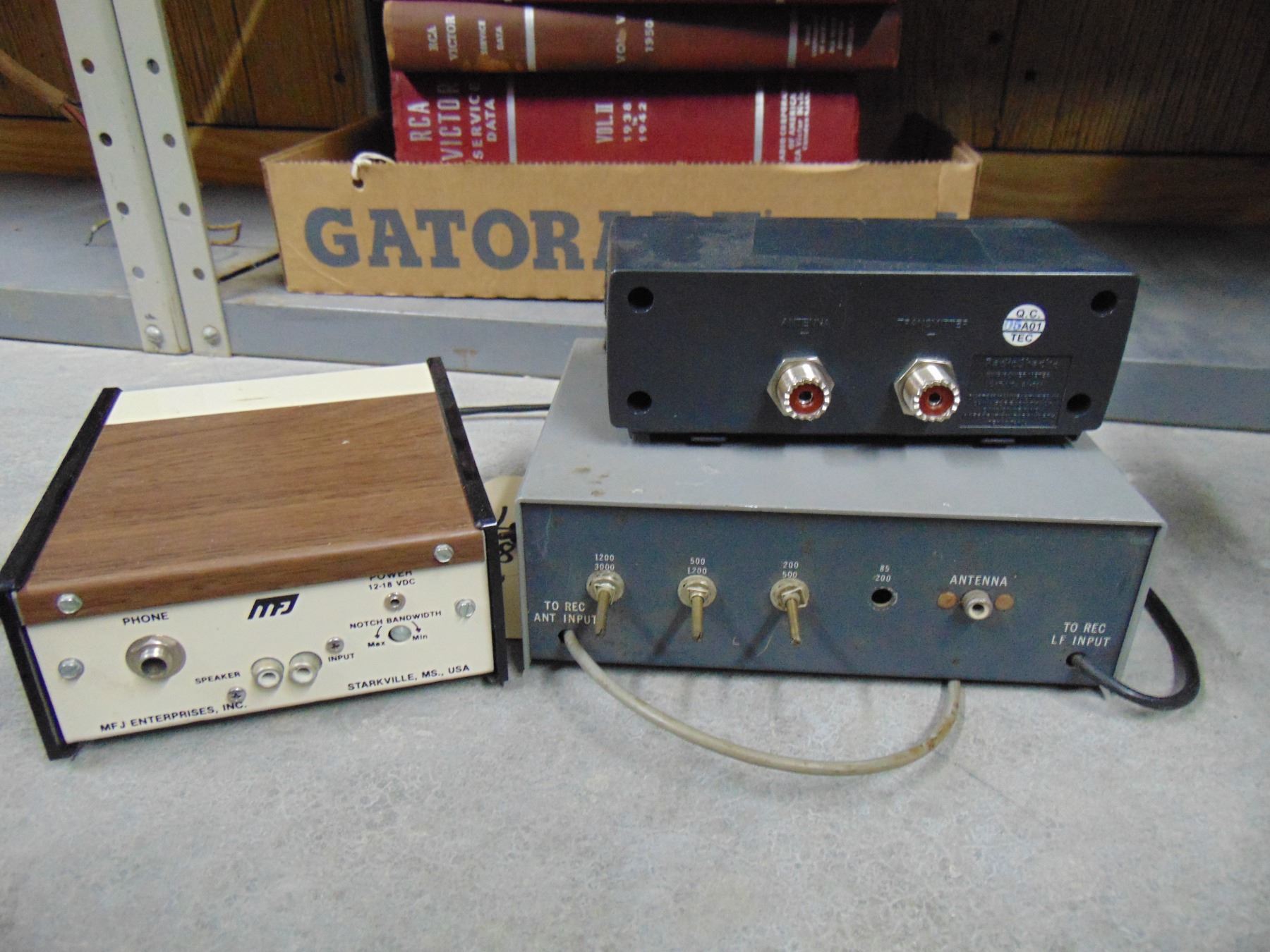 Flat of misc. ham items; includes Hallicrafters tuner, MFJ filter, and Radio Shack power meter