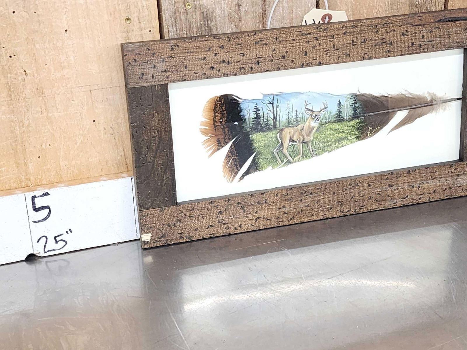45.41 In rustic frame featuring Whitetail Deer great accent piece