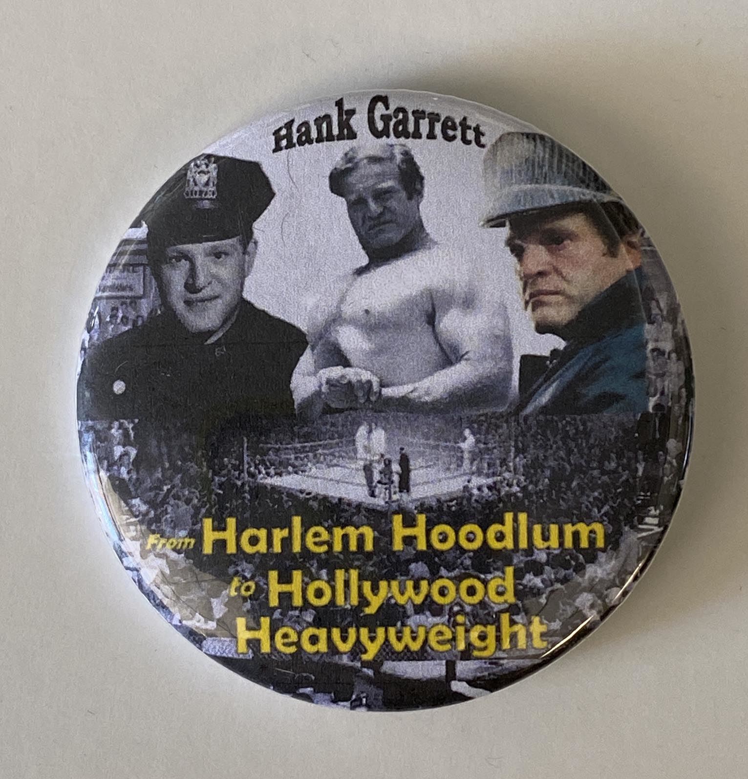 Hank Garrett Harlem Hoodlum to Hollywood Heavyweight pin. 2 inch