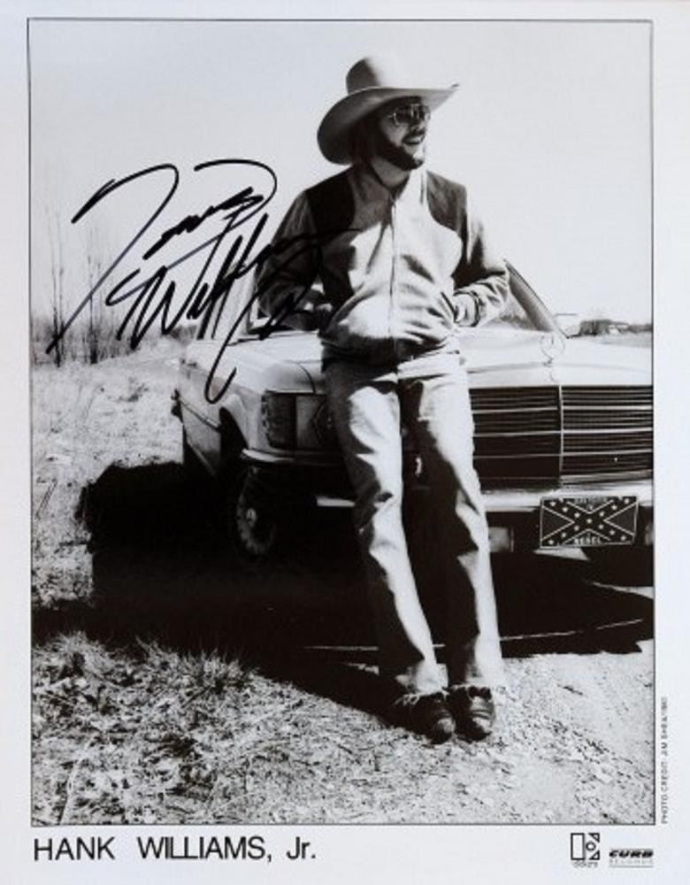 Elektra Curb Records promotional photo autographed by Hank Williams Jr. 8x10 inches. This item is a reprint of an original autograph