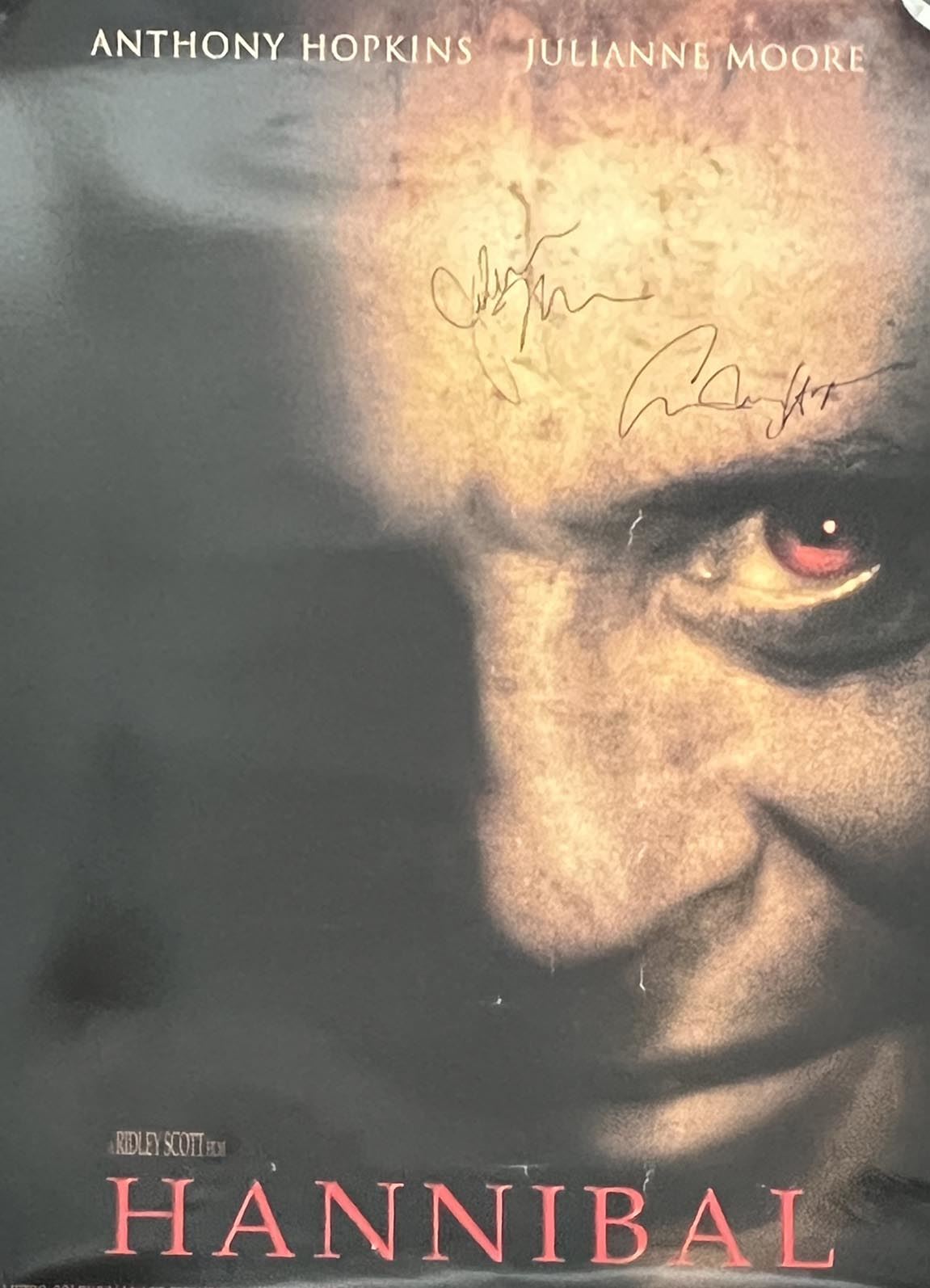 Hannibal signed poster autographed by Anthony Hopkins and Julianne Moore. 27x35 inches
