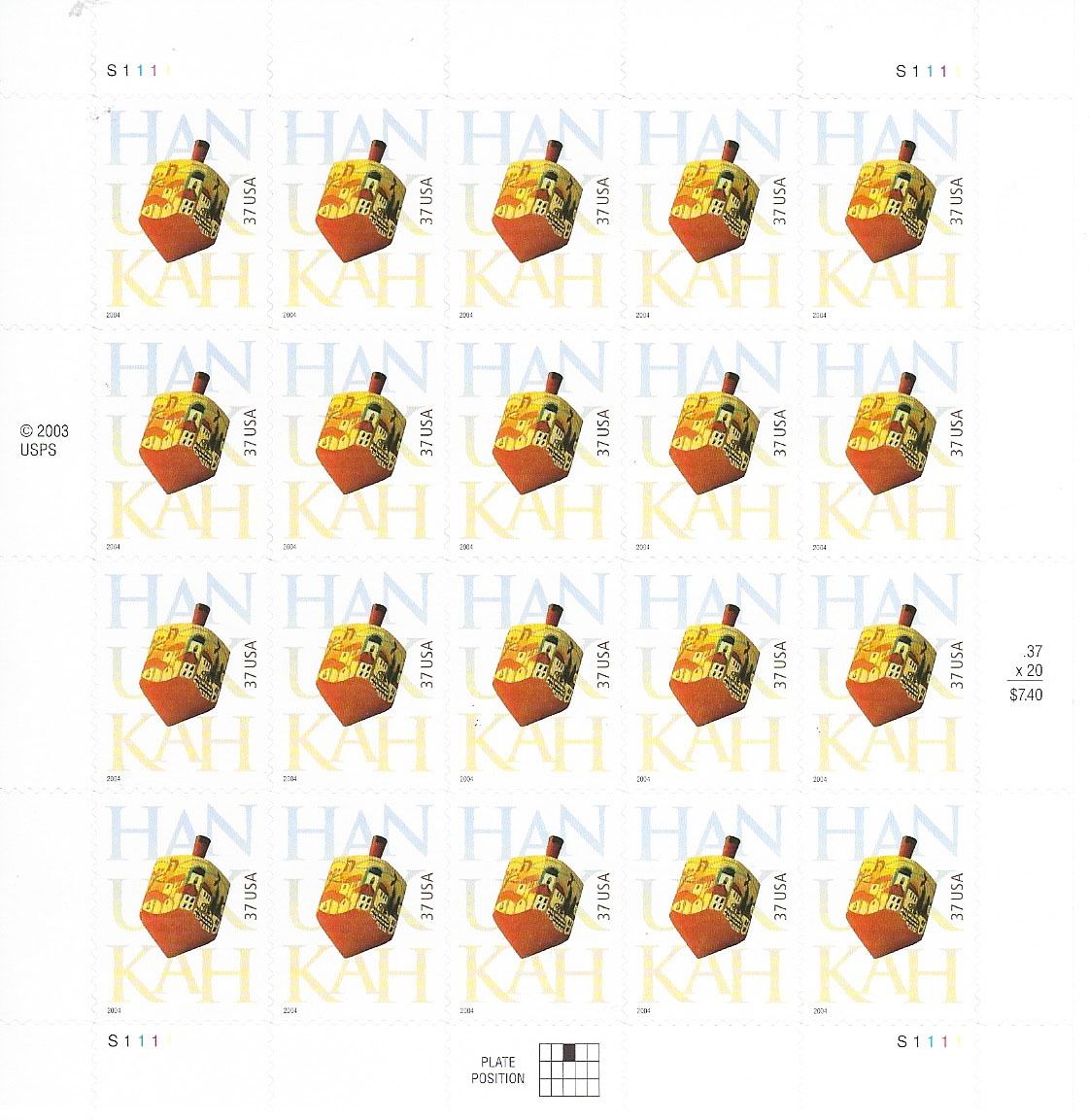 Hanukkah Dreidel Stamp Sheet - USA - 37 Cents x 20 Stamps - 2003 USPS