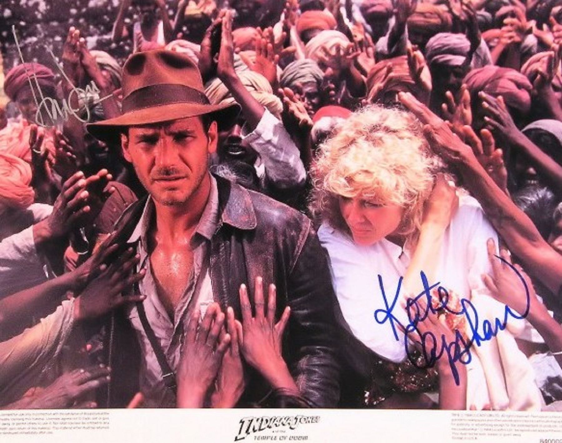 Indiana Jones and the Temple of Doom original lobby card autographed by Harrison Ford and Kate Capshaw 14 in. by 11 in.