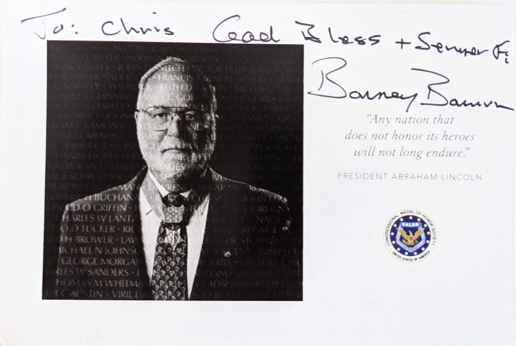 Harvey Curtiss Barnum signed card