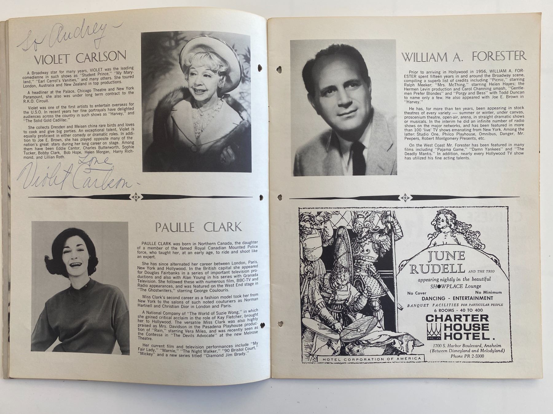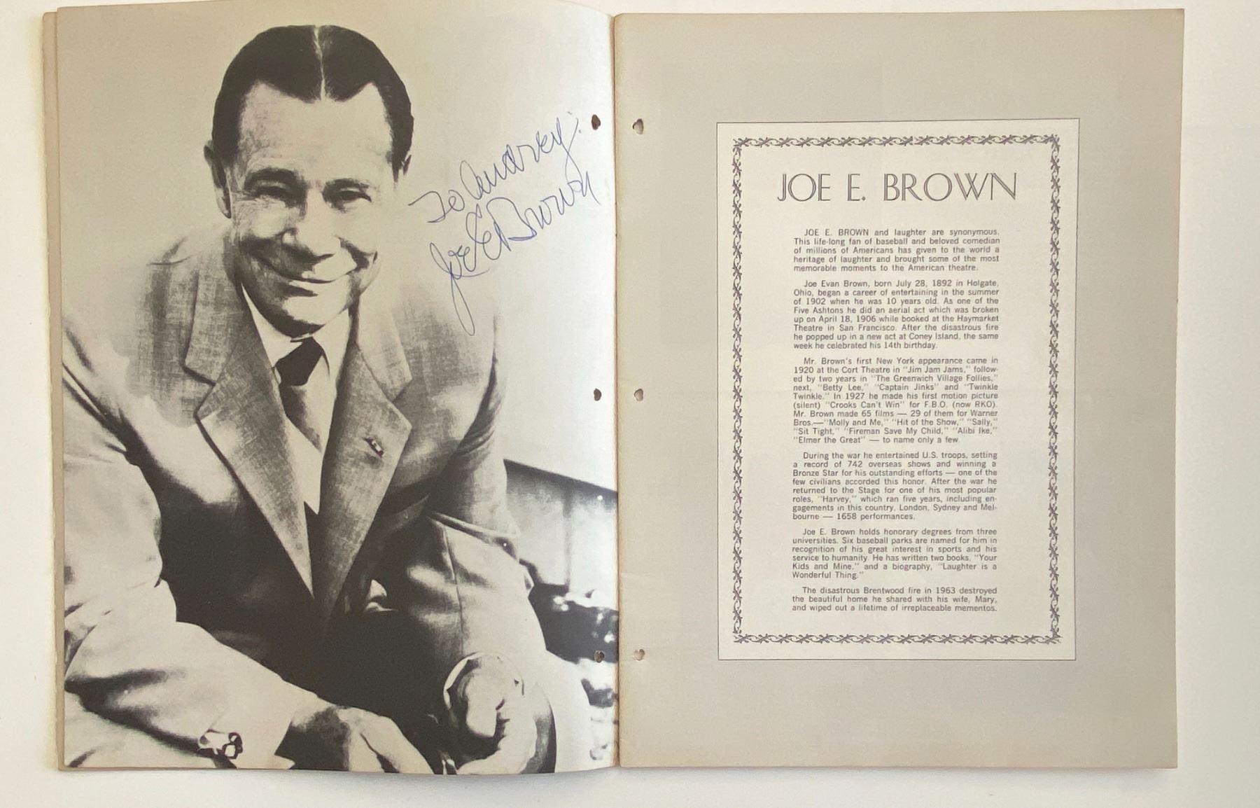 Harvey cast signed program autographed by Joe E. Brown, Violet Carlson, and Pearl Shear signed program. 9x12 inches