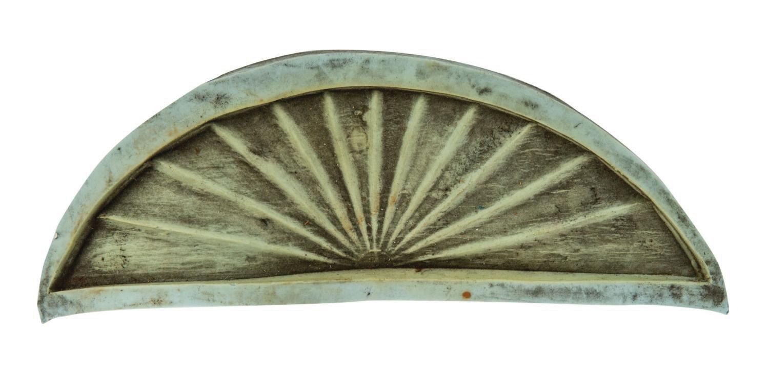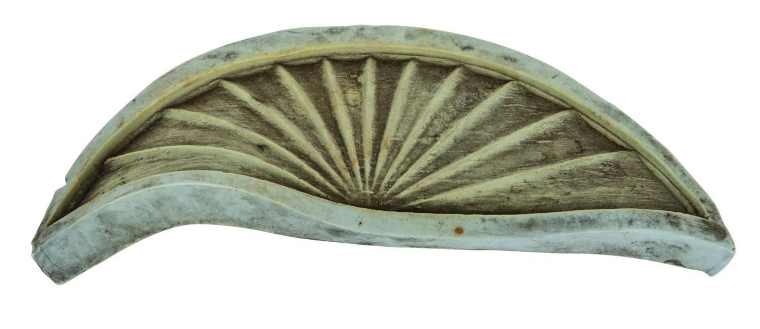 (Disneyland, c.1995) A mold used in creating accent patterns on the ghostly horse-drawn hearse carriage parked in front of the Haunted Mansion at Disneyland. The Haunted Mansion's hearse was originally intended for an Indiana Jones Stunt Spectacular Show at Disneyland. After the show concept was scrapped, the hearse was re-themed with new accents and displayed in front of the Haunted Mansion in September of 1995. Measuring 15.75"x5.5" and 1.25" thick, the soft rubber mold features some discoloration, ink retention, and warping from use and age.