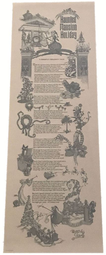 (Disneyland, New Orleans Square, The Haunted Mansion, c. 2001). Disneyland The Haunted Mansion 2001 scroll with a poem written by Tim Burton. Several lines from the poem are used in the holiday version of The Haunted Mansion. The scroll measures approximately 37" x 13" and is in good condition with normal wear from age and minimal handling. It comes in its original tube.