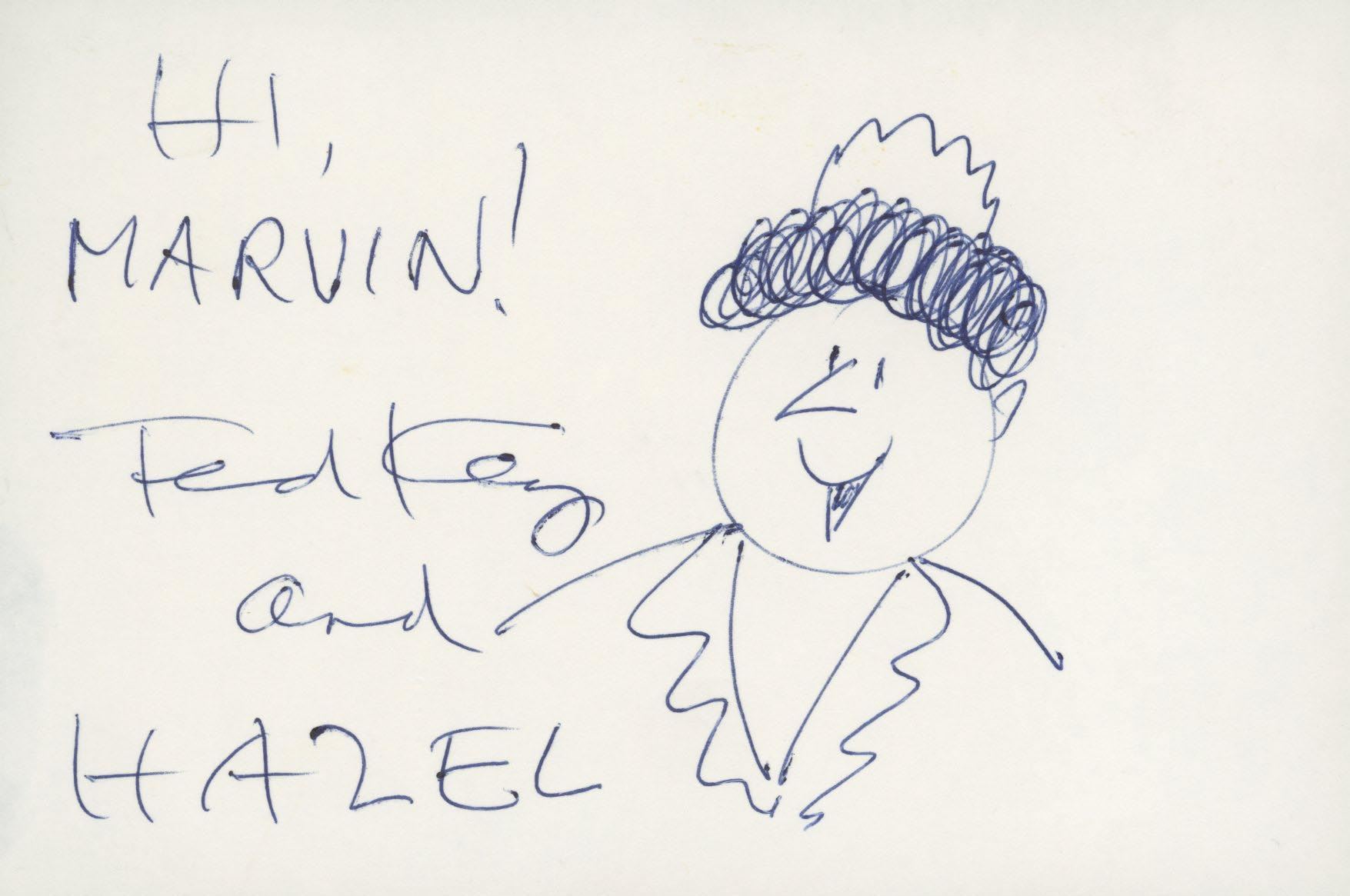 Hazel comic original hand drawn sketch signed by Ted Key. 6x4 inches
