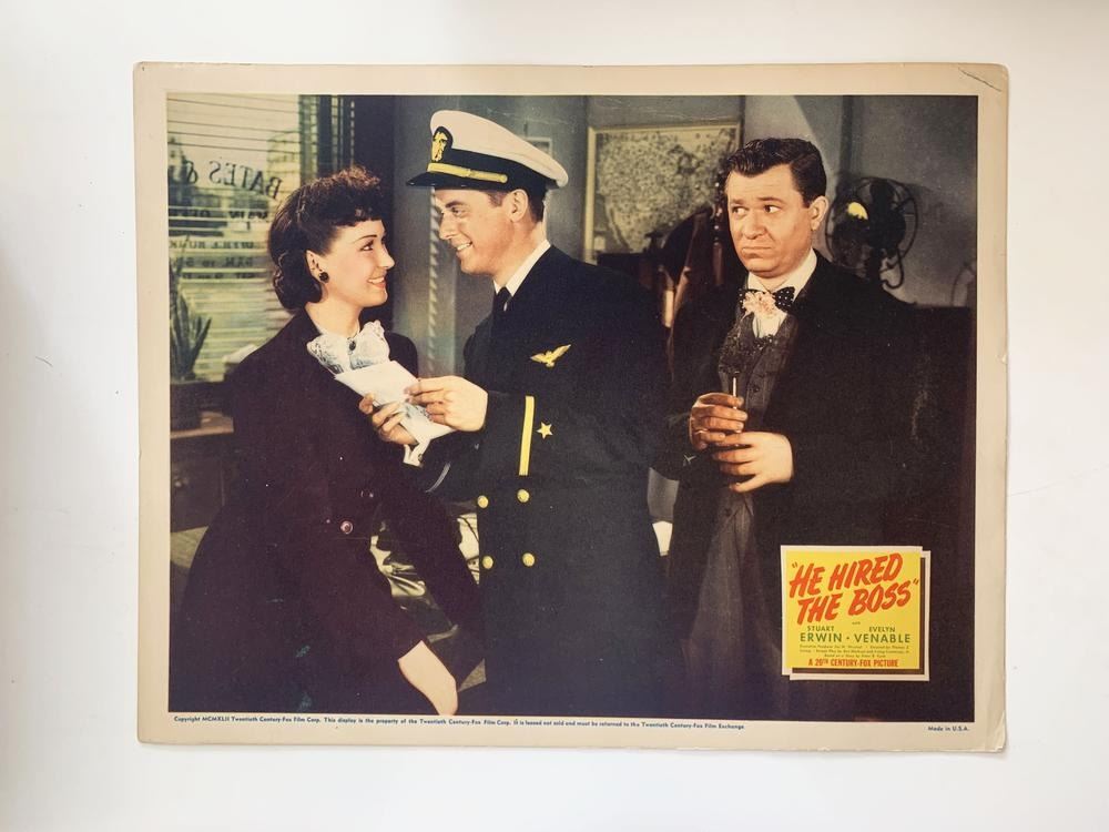 He Hired the Boss original 1942 vintage lobby card on heavy card stock. 11x14 inches